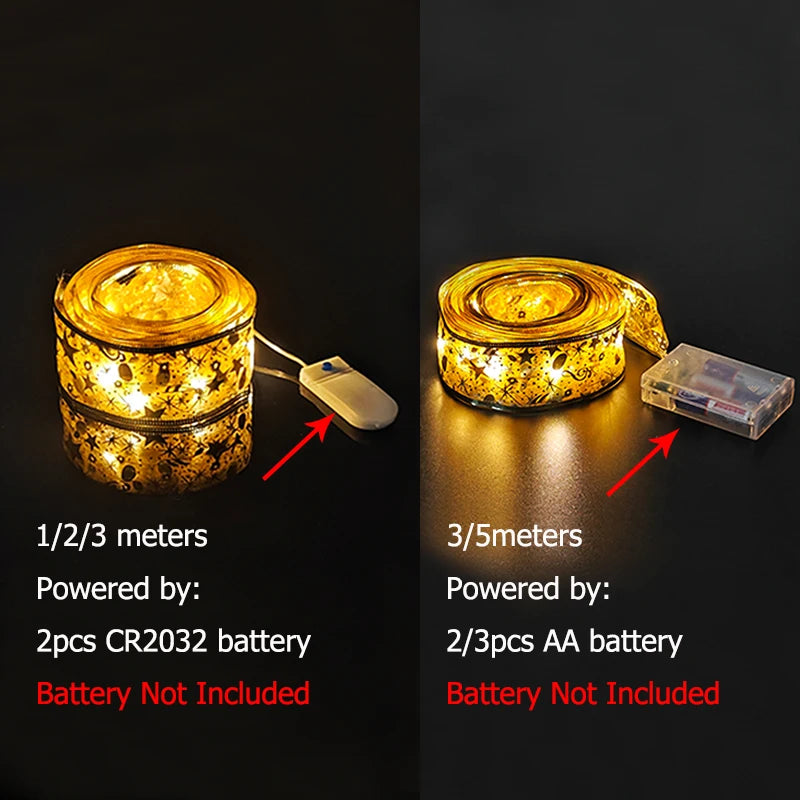 1/2/3/5/10m New Year Christmas LED String Light Christmas Tree Decor Fairy Ribbon Light Strings Xmas Home Ornament Garland Light